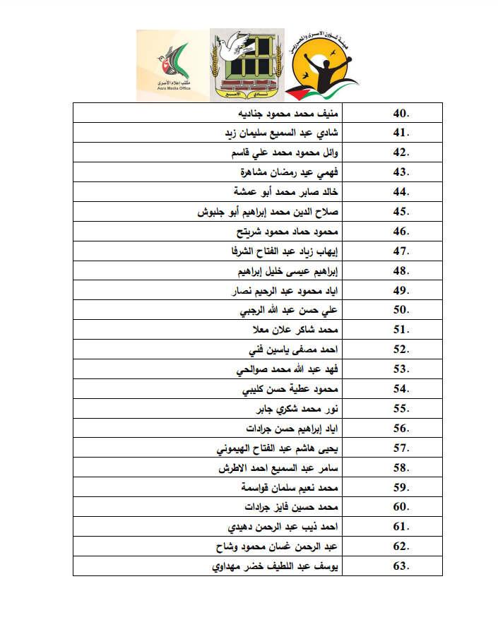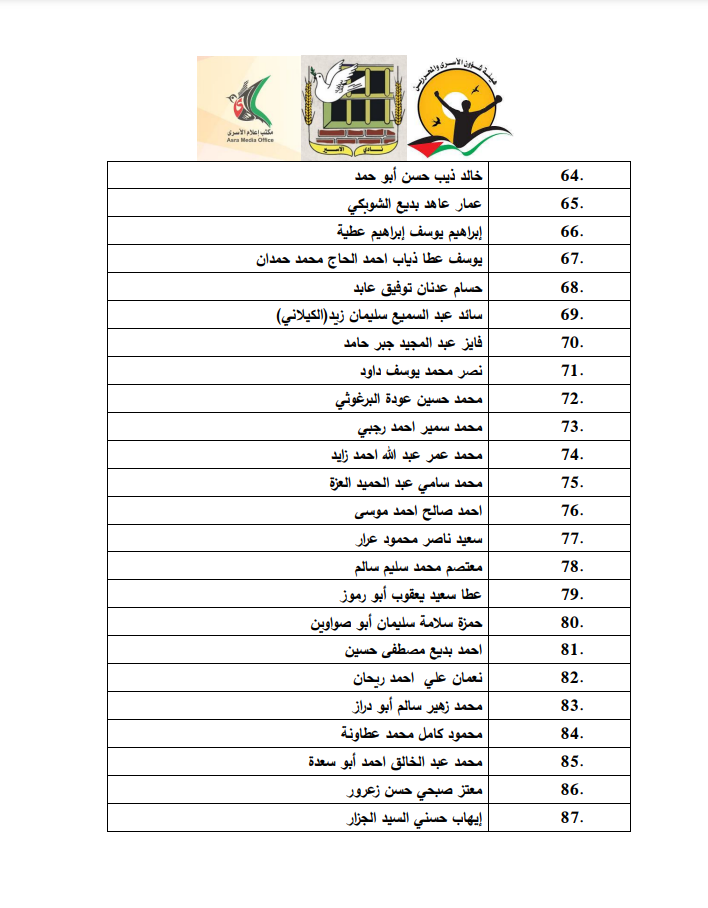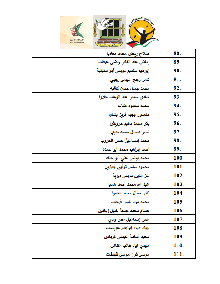 نشر أسماء الأسرى الفلسطينيين الذين ستفرج عنهم إسرائيل ضمن الدفعة الثانية من صفقة التبادل