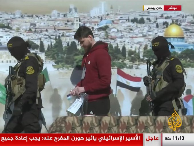 وسلمت حركة حماس اليوم السبت، 3 أسرى إسرائيليين للصليب الأحمر وهي الدفعة السادسة لعملية التبادل مع إسرائيل في إطار اتفاق وقف إطلاق النار وتبادل الأسرى والمحتجزين.، والأسرى المفرج عنهم اليوم، هم: الإسرائيلي الأمريكي ساجي ديكل تشين، والإسرائيلي الروسي ألكسندر توربانوف والإسرائيلي يائيرهورن.