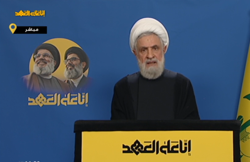 وقال قاسم إن “فلسطين هي بوصلتنا وندعم تحريرها وسنواجه مشروع الرئيس الأمريكي دونالد ترامب التهجيري مع كل القوى في المنطقة 160 ألف شهيد وجريح في غزة هؤلاء هم الثمن الحقيقي من أجل نواصل على العهد”.