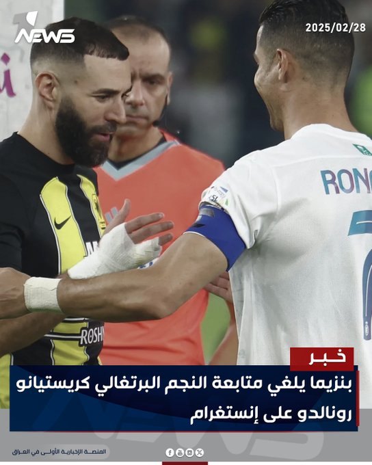 وكشفت صحيفة “ماركا” الإسبانية أن كريم بنزيما قام بإلغاء متابعة كريستيانو رونالدو على منصة “إنستغرام” في خطوة مفاجئة تشير إلى توتر العلاقة بينهما ولكن اللافت أن رونالدو لم يرد بالمثل حيث لا يزال يتابع النجم الفرنسي.