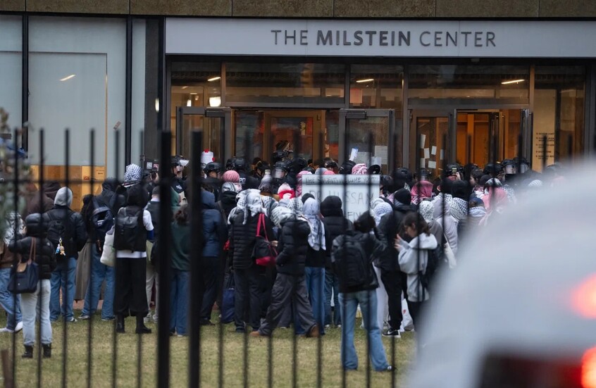 وكان متظاهرون مناصرون للقضية الفلسطينية قد اقتحموا مكتبة في كلية برنارد بجامعة كولومبيا احتجاجا على طرد ثلاثة طلاب بسبب نشاطهم الداعم لفلسطين داخل الحرم الجامعي.