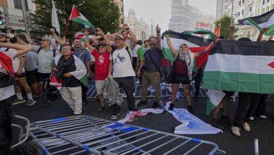 متظاهرون يقطعون شوارع وسط مدريد أمام سباق طواف إسبانيا احتجاجا على المشاركة الإسرائيلية