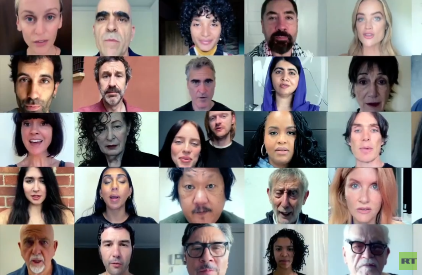 ونشرت الحركة مقطع فيديو يضم مغنية البوب الأمريكية بيلي إيليش، والممثل الأيرلندي سيليان مورفي، والممثل والمنتج والناشط الفنان خواكين فينيكس ومشاهير آخرين، يدعون فيه إلى وقف إطلاق النار في غزة.