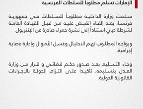 الإمارات تسلم مطلوبا من الإنتربول إلى فرنسا ومصادر سورية تؤكد أنه القائد العام لجيش الإسلام