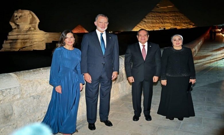 السيسي يصطحب ملك إسبانيا وزوجته في جولة بمنطقة الأهرامات التاريخية