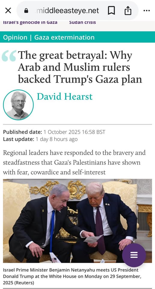 الصحفي ديفيد هيرست: الخيانة العظمى: لماذا أيد الحكام العرب والمسلمون خطة ترامب رغم خداعهم؟!