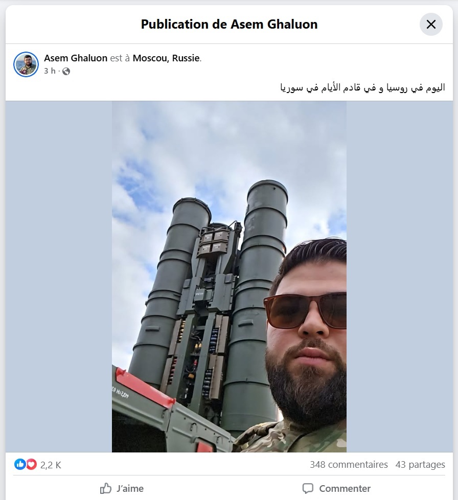 نشر صورة مع “S-400” الروسية.. مدير الاتصال بالدفاع السورية: اليوم في روسيا وغدا في سوريا