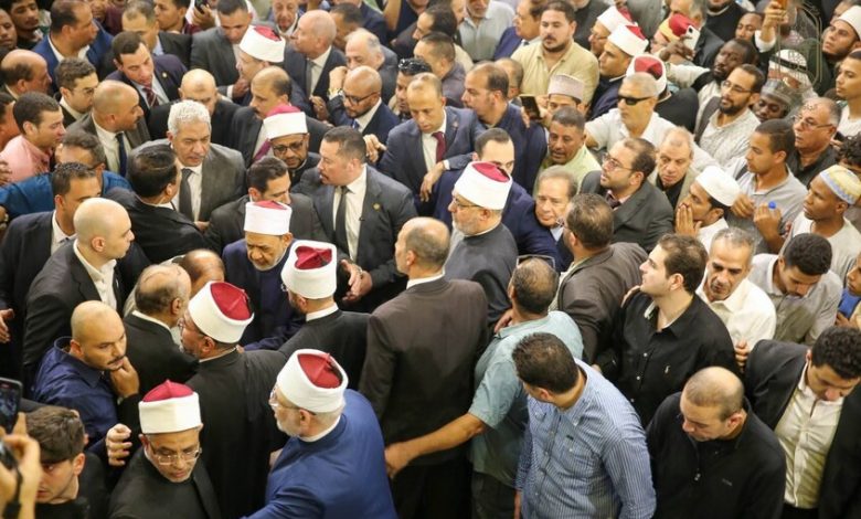واحتشد المئات من طلاب الازهر حول شيخ الأزهر عقب صلاة الجنازة، حيث وثقت مقاطع فيديو حالة الزحام الشديد حول الشيخ “الطيب” وتدافع الطلاب والمصلين في محاولة لمصافحة شيخ الأزهر.