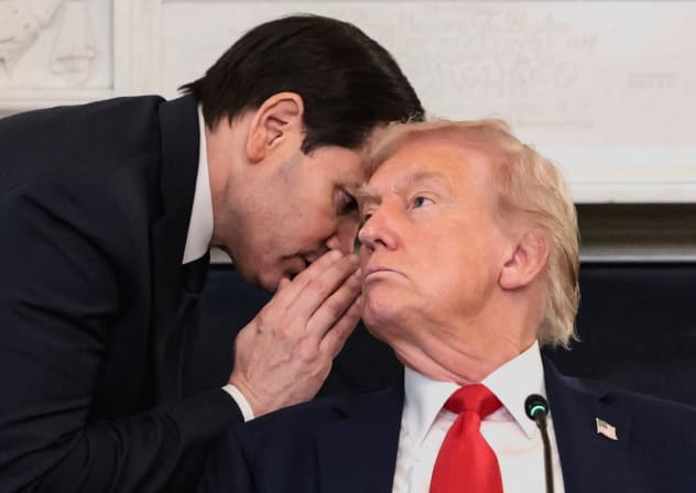 (الصورة للرئيس الأمريكي ترامب يتلقى إخطارا من وزير خارجيته روبيو خلال اجتماع في البيت الأبيض عن التوصل إلى الاتفاق بين إســرائيل وحــماس – الصورة من رويترز)