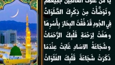 فِي وَصْفِ حُسْنِكَ تَعْجَزُ الكَلِمَاتُ و تَهَابُ نَعْتَ سِمَاتِكَ الخَطَرَاتُ يَا مَنْ عَلَوْتَ العَالَمِينَ جَمِيعَهُمْ و تَوَضَّأْتْ مِنْ ذِكْرِكَ الصَّلَوَاتُ…