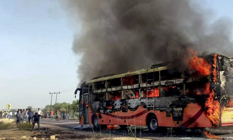 مقتل ما لا يقل عن 20 شخصا في حريق اندلع بحافلة ركاب شمالي الهند