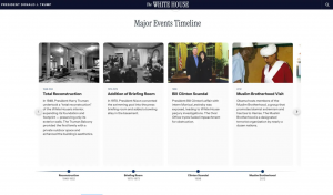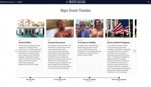 ويتضمن الجدول الزمني، الذي يوثق في الغالب مشاريع البناء الرئيسية، الآن إدخالات تشير إلى “علاقة الرئيس بيل كلينتون مع المتدربة مونيكا لوينسكي”، التي كُشفت عام 1998، وأحداث مثيرة للجدل استضافها البيت الأبيض عندما كان الرئيسان الديمقراطيان باراك أوباما وجو بايدن في المنصب.