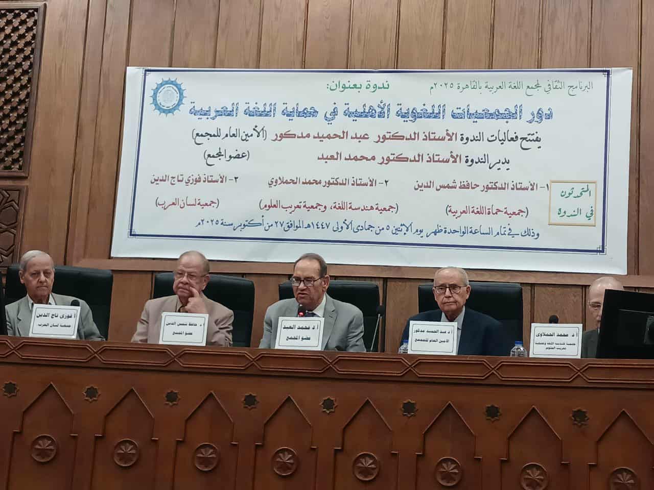 عقد مجمع اللغة العربية بالقاهرة، اولى ندوات برنامجه الثقافي لهذا الموسم، بعنوان” دور الجمعيات اللغوية الأهلية في حماية اللغة العربية “، وذلك يوم الإثنين ٥ من جمادى الآخرة ١٤٤٧ هجري الموافق ٢٧ أكتوبر ٢٠٢٥م٠