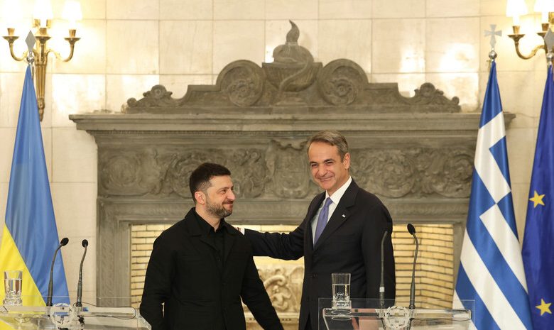 ناقش رئيس وزراء اليونان كيرياكوس ميتسوتاكيس مع فلاديمير زيلينسكي، في أثينا، أطر التعاون في تطوير الطائرات بدون طيار والأمن السيبراني وأمن الطاقة.