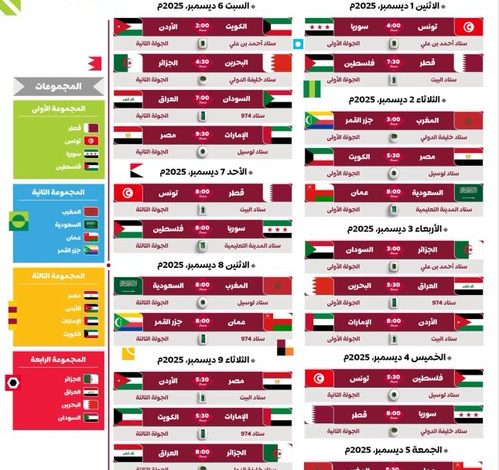 البرنامج الكامل لمنافسات كأس العرب 2025 في قطر