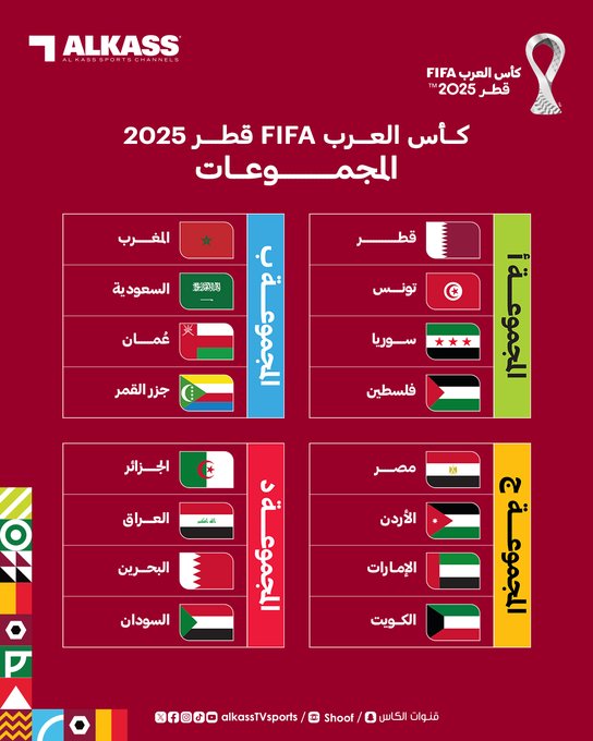 بعد اكتمال عقد المتأهلين.. تعرف على المجموعات الأربع في كأس العرب 2025