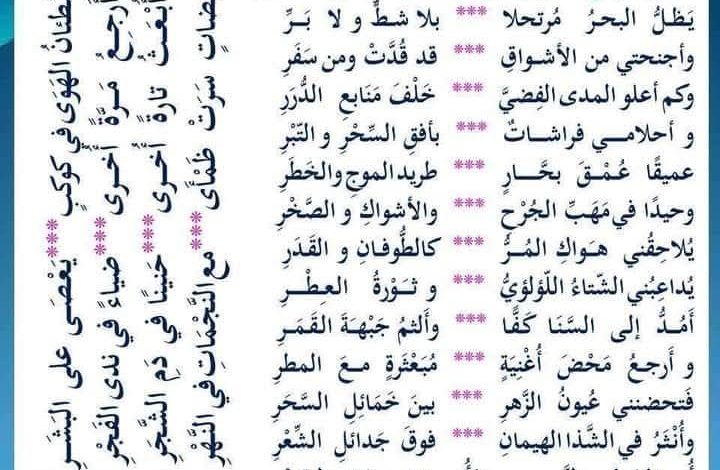 وأَجْنِحَتِي مِنَ الأَشْوَاقِ