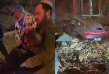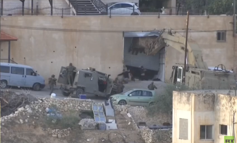 وأظهرت اللقطات قيام جرافة عسكرية تابعة للجيش بهدم مدخل مخزن داخل أحد المنازل المحاصرة، قبل أن يخرج شابان فلسطينيان رافعين أيديهما مستسلمين.