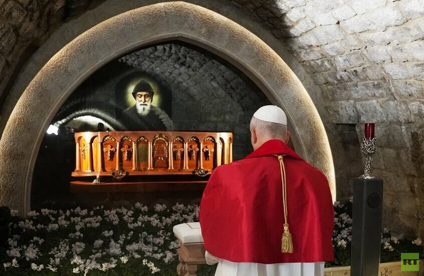 وبعد زيارة ضريح مار شربل، توجه البابا ليو الرابع عشر إلى مزار سيدة لبنان في حريصا.