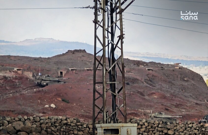وكانت القوات الإسرائيلية توغلت أمس في تلة الحمرية بين بلدة حضر وقرية طرنجة، وفي الصمدانية الشرقية وبلدة جبا وقرية أم باطنة بريف القنيطرة الشمالي، وفي تل أبو قبيس وصيدا الحانوت بريف القنيطرة الجنوبي.