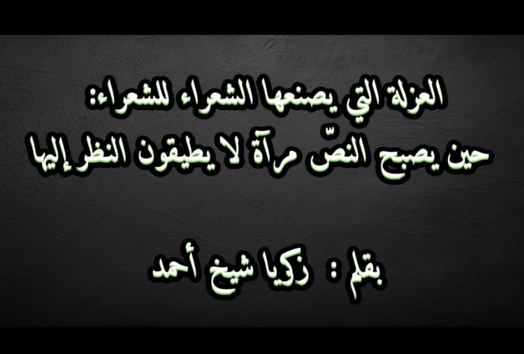 العزلة التي يصنعها الشعراءُ للشعراءِ.. زكريا شيخ أحمد / سوريا