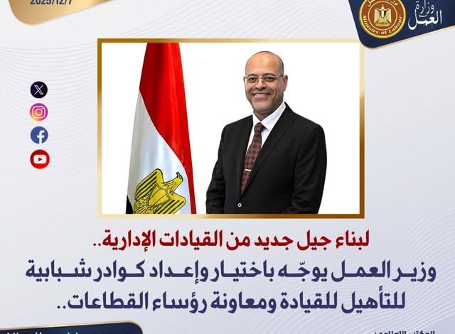 لبناء جيل جديد من القيادات الإدارية.. وزير العمل يوجّه باختيار وإعداد كوادر شبابية للتأهيل للقيادة ومعاونة رؤساء القطاعات..