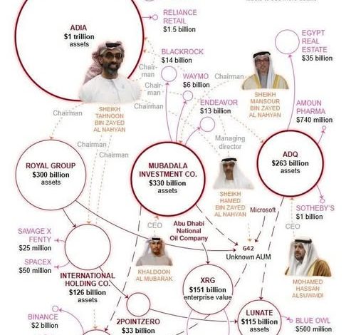 بلومبيرج خريطة القوة بـ 2 تريليون دولار: الكشف عن الشبكة المعقدة التي تحكم إمبراطورية أبوظبي الاستثمارية العالمية!