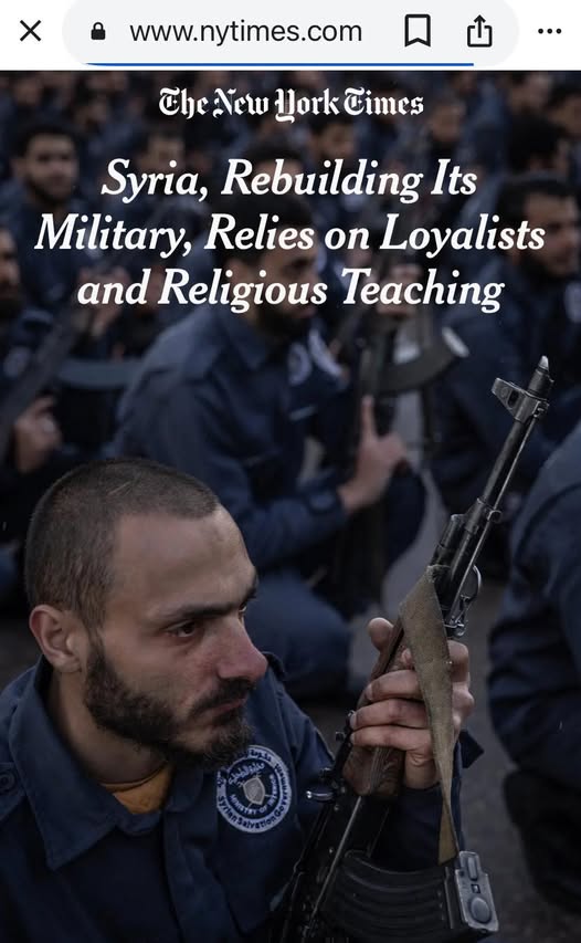 تقرير النيويورك تايمز كشف أن الجيش السوري الجديد يتم تشكيله من جبهة تحرير الشام الذي كان يقوده أحمد الشرع، وبأساليب التدريب نفسها، بما فيها التعليم الديني.