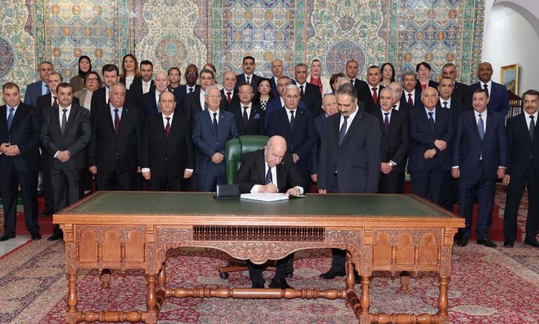وجرت مراسم التوقيع بقصر “المرادية” الرئاسي في الجزائر العاصمة، في حضور أعضاء الحكومة.