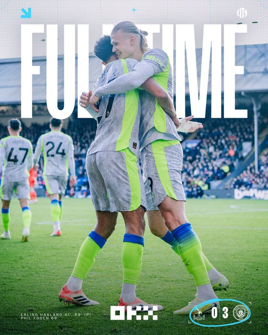 وافتتح النجم النرويجي إرلينغ هالاند التسجيل لمانشستر سيتي في الدقيقة 41، فيما أضاف زميله فيل فودين الهدف الثاني في الدقيقة 69، لكن هالاند عاد لهز الشباك من جديد، محرزا الهدف الثالث للفريق السماوي وهدفه الشخصي الثاني في الدقيقة 89 من ركلة جزاء.