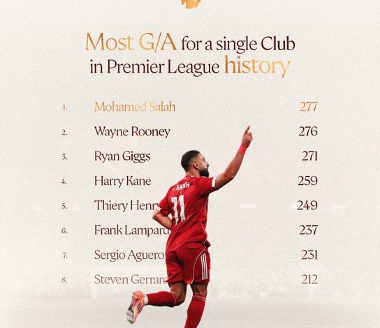 وتصدر محمد صلاح ترتيب الأكثر مساهمة في تسجيل الأهداف في “البريمير ليغ” (تسجيل وصناعة) بتمريرة حاسمة خلال مباراة ليفربول أمام برايتون، ليصل إلى الرقم 277 في مشواره مع ليفربول بين تسجيل وصناعة.