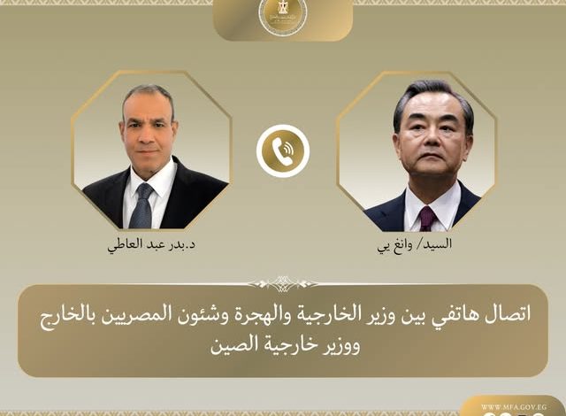 جرى اتصال هاتفي بين د. بدر عبد العاطي وزير الخارجية والهجرة وشئون المصريين بالخارج، والسيد “وانج يي” وزير خارجية الصين، يوم الثلاثاء ١٦ ديسمبر ٢٠٢٥، وذلك لبحث سبل تعزيز العلاقات الثنائية بين البلدين والتشاور حول التطورات الإقليمية ذات الاهتمام المشترك.