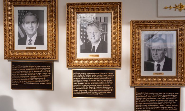 أضاف الرئيس الأمريكي دونالد ترامب لوحات جديدة أسفل كل صورة من صور رؤساء أمريكا الـ 45 في “ممشى المشاهير الرئاسي” بالبيت الأبيض، تضمنت هجمات لاذعة ضد أسلافه بايدن وأوباما وبوش.
