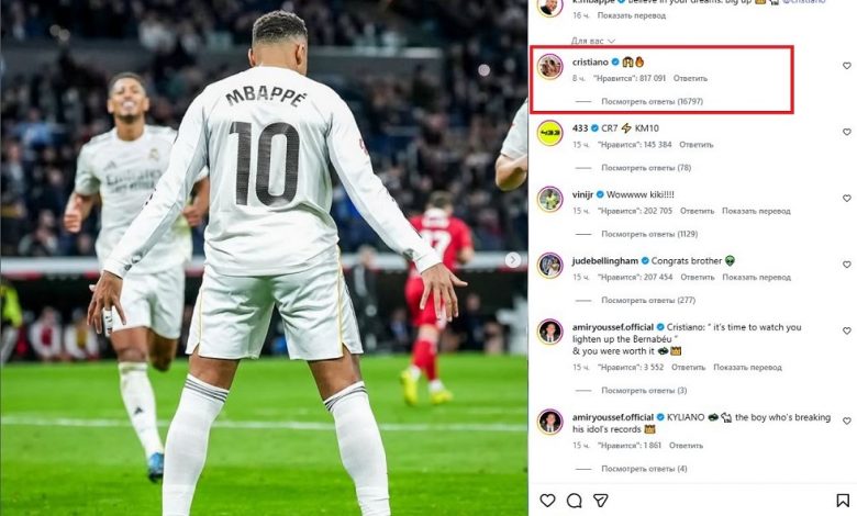 وعلق كريستيانو رونالدو على منشور لمبابي بعد معادل الرقم القياسي “لصاروخ ماديرا” عبر موقع “إنستغرام” للتواصل الاجتماعي، برموز عبارة عن نيران مشتعلة كدليل على الحماس وتصفيق باليدين.
