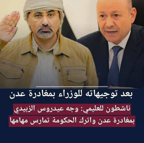 “على جميع الوزراء مغادرة عدن فورًا، وأي تأخير يُفسَّر دعمًا للتمرد.”