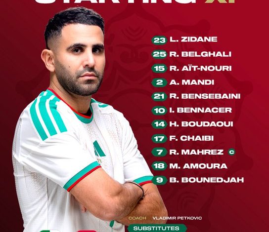 وجاءت تشكيلة الجزائر لمواجهة السودان كما يلي: