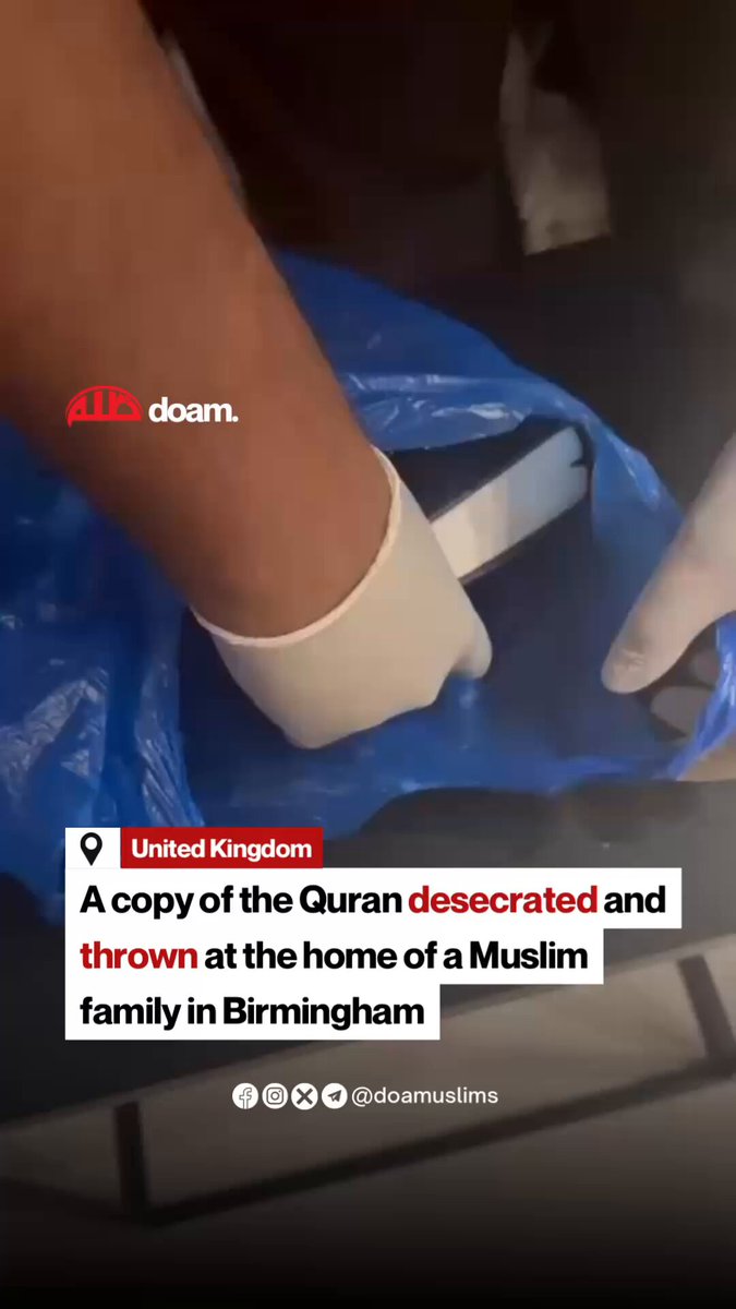 سجلت كاميرا المراقبة إلقاء مجهول نسخة مدنَّسة من القرآن الكريم على منزل عائلة مسلمة في برمنغهام، وترك ملاحظة كتب عليها “هدية لكم”.
