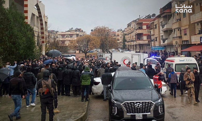 وقالت وسائل إعلام سورية إن الآلاف من الأهالي شاركوا في التشييع بالإضافة إلى مسؤولين محليين، كما شملت المراسم صلاة الجنازة على أرواح الضحايا ودفنهم في مقابر المنطقة.