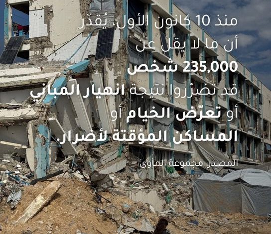وتابعت الوكالة أن التقديرات تشير إلى انهيار 17 مبنى، وتعرض أكثر من 42 ألف خيمة أو مأوى مؤقت لأضرار كاملة أو جزئية خلال الفترة من 10 إلى 17 ديسمبر، ما أثر على ما لا يقل عن 235 ألف شخص.