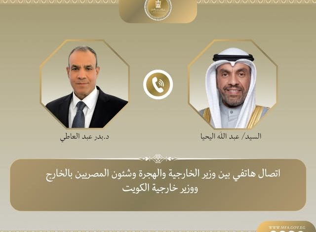 وخلال الاتصال، أكد الوزير عبد العاطي ما يربط مصر والكويت من علاقات أخوية راسخة، تقوم على التفاهم المتبادل والتنسيق الوثيق، مشيراً إلى الحرص المشترك على مواصلة دفع أطر التعاون الثنائي في مختلف المجالات، ولاسيما الاقتصادية والتجارية والاستثمارية، بما يخدم المصالح المشتركة للشعبين الشقيقين.