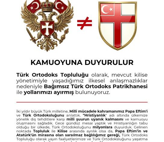 وقالت الجماعة في تدوينة على منصة “إكس”: “بصفتنا الجماعة الأرثوذكسية التركية، ونظرا لاختلافات جوهرية مع إدارة الكنيسة، فقد انفصلنا عن البطريركية الأرثوذكسية التركية المستقلة اعتبارا من 4 يناير 2026”.