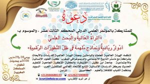 تنظيم المؤتمر العلمي الدولي المحكم الثالث عشر ، الموسوم ب *المرأة العالمية والبحث العلمي أدوار ريادية ونماذج ملهمة في ظل التطورات الرقمية