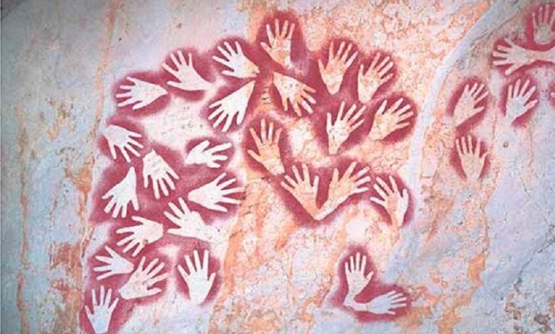 يُعتقد أن بصمة يد تركها فنان قديم على جدار أحد كهوف جزيرة سولاويزي الإندونيسية منذ أكثر من 67,800 عام، قد تكون أقدم أعمال الفن الصخري المعروفة. ويُظهر الرسم تعديلا واضحا في الأصابع، إذ تبدو كما لو أنها مخالب، وهو ما يرجّح أن الفنان عمد إلى تعديل شكل اليد عبر إضافة صبغة أو تحريك اليد أثناء رش الطلاء.