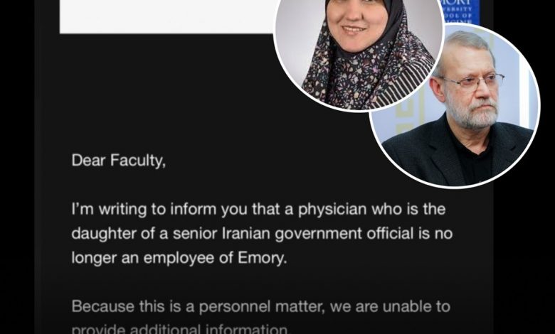 وذكر تقرير لموقع “ذا إيموري ويل” الأمريكي، أن عميدة كلية الطب في جامعة إيموري ساندرا وونغ أبلغت أعضاء هيئة التدريس في الكلية، أن فاطمة أردشير علي لاريجاني لم تعد موظفة في الجامعة.