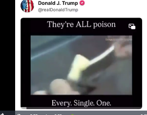 ونشر ترامب الفيديو على منصة تروث مرفقا بعبارة: “إنها كلها سموم.. كل واحد منها”.