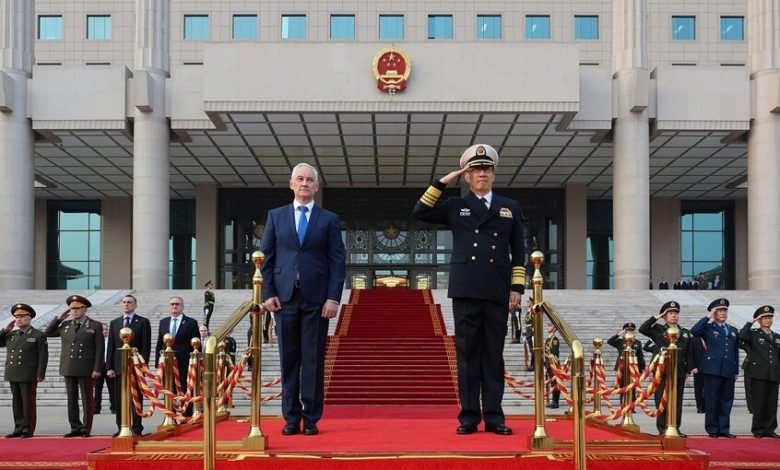 وتابع: “روسيا مستعدة للعمل مع الصين لتعزيز المشاورات الاستراتيجية بين القوات المسلحة للبلدين وتعميق التعاون العملي في مجالات مثل العمليات المشتركة وتدريب الأفراد”.