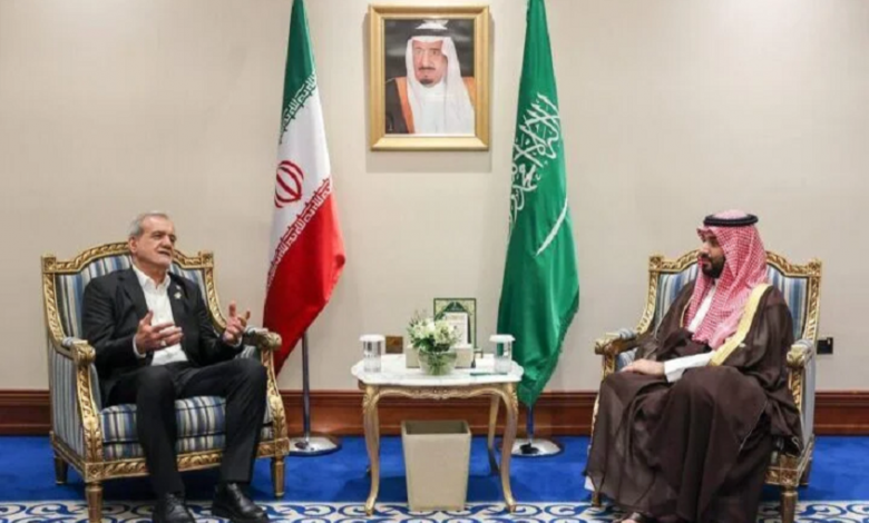 وذكرت وكالة الأنباء السعودية أن بن سلمان تلقى اتصالا هاتفيا من الرئيس الإيراني مسعود بزشكيان، أوضح خلاله مستجدات الأوضاع في بلاده، واستعرض جهود الحكومة الإيرانية في هذا الشأن، كما استعرض مستجدات المباحثات بشأن الملف النووي.