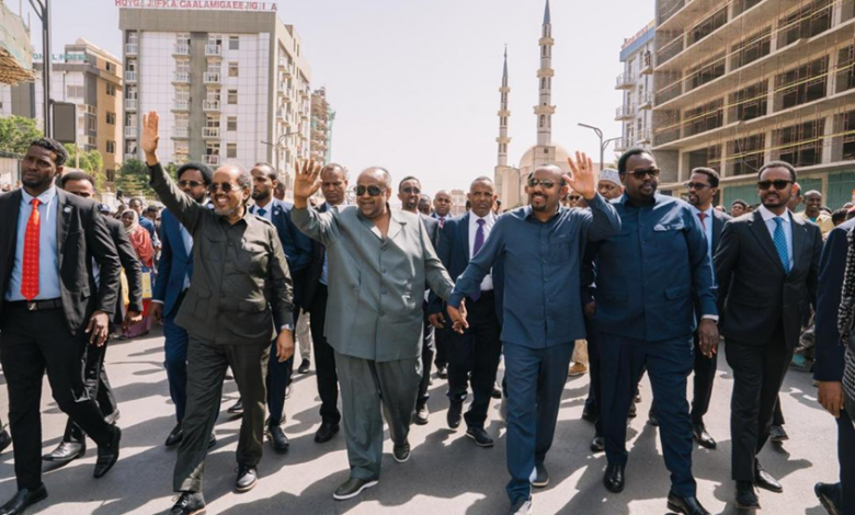 ونشر آبي أحمد عبر حسابه بمنصة “إكس” صورا مع الزعيمين الصومالي والجيبوتي، وعلق: “أهلا بكم في إثيوبيا إخوتي في القرن الإفريقي”.