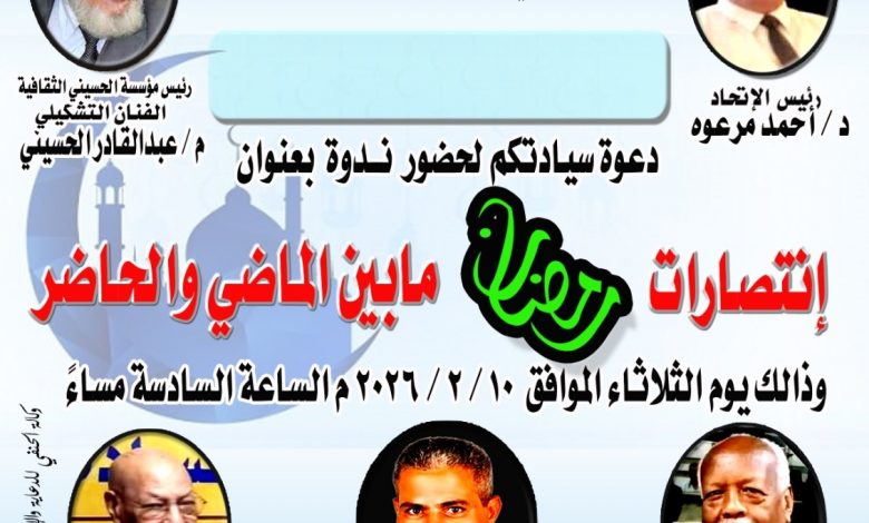 بعنوان “انتصارات رمضان ما بين الماضي والحاضر ” ويشارك فيها الساده :سيد جمعة وشريف الحنفي ومحمود مبروك