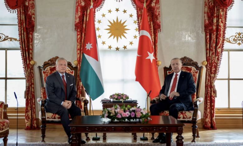 بحث العاهل الأردني الملك عبدالله الثاني والرئيس التركي رجب طيب أردوغان في إسطنبول سبل تعزيز التعاون الثنائي بالمجالات الاقتصادية والاستثمارية والصناعية والعسكرية بما يخدم البلدين.
